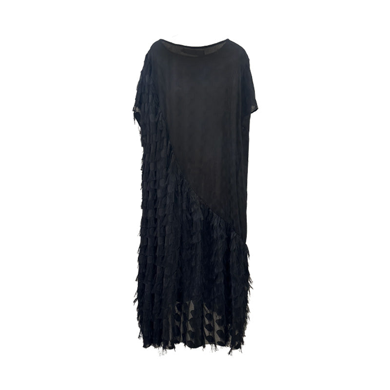 Each piece of clothing, whether it's a top or a skirt, undergoes a unique hand-dyeing process using natural plant-based dyes after production. The garments feature intentional texture marks and subtle stains, adding an organic, vintage touch to each item.